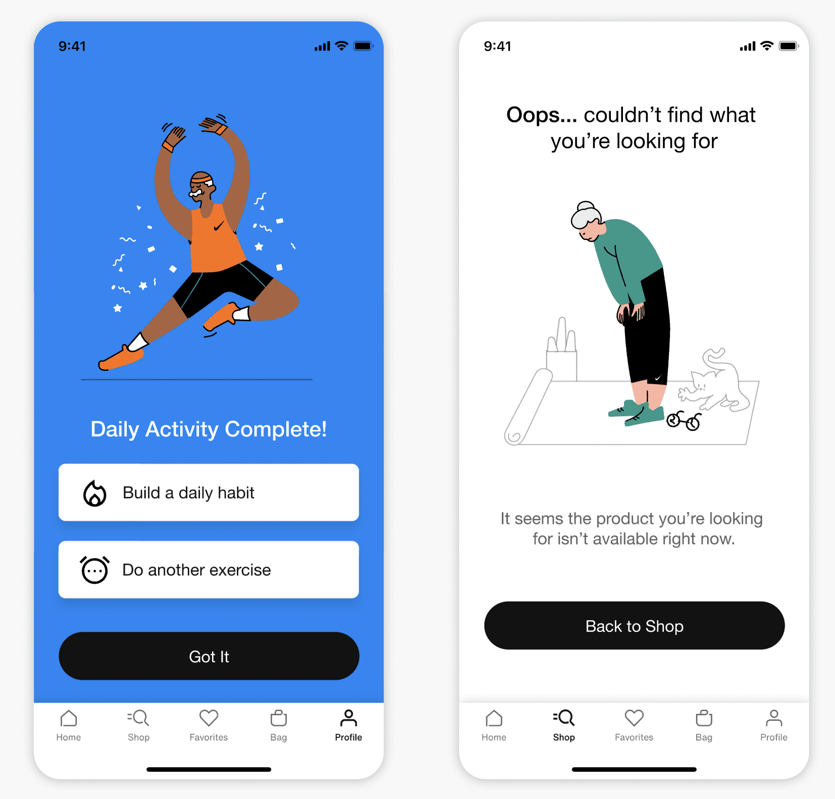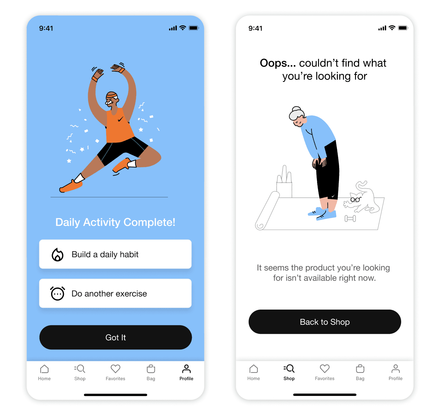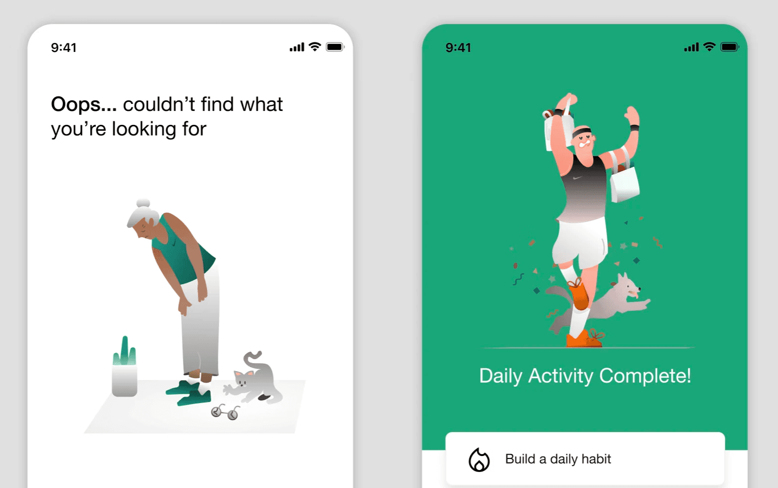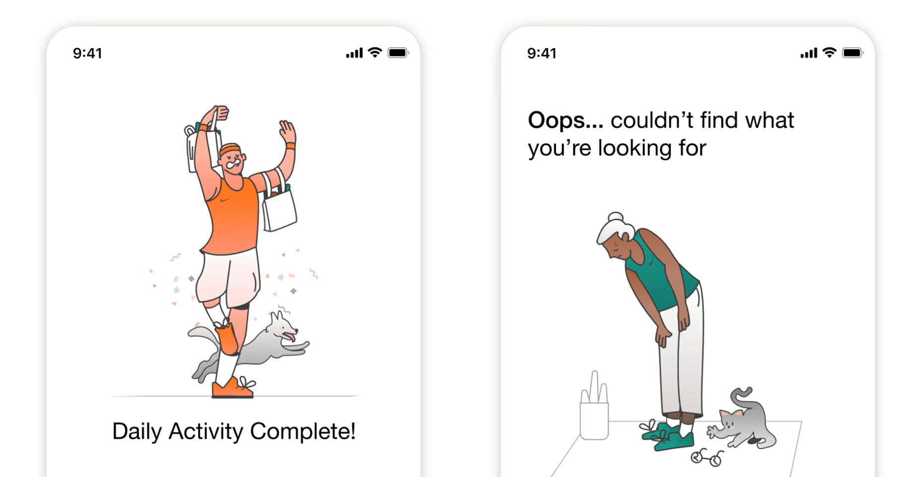 The illustrations are crafted to make the app feel inviting, age-inclusive, and joyful. They feature older adults in dynamic, optimistic poses performing familiar exercises like stretching, strength training, and walking with friends.