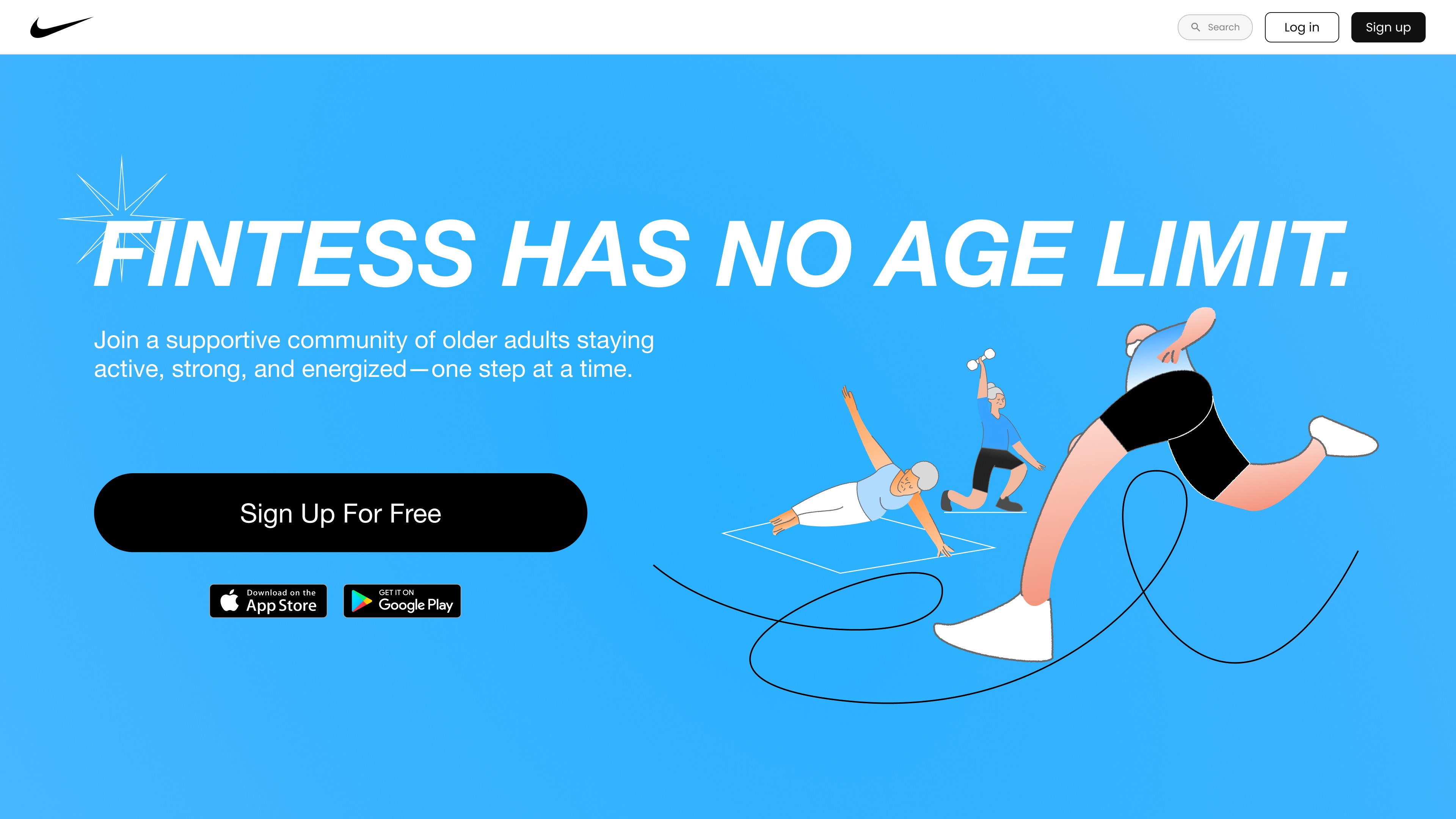 Nike for adult is a sub-brand Nike concept fitness app designed specifically for older adults who want to stay active, healthy, and confident in their everyday lives. The goal of the app is to provide a gentle yet empowering fitness journey that emphasizes functionality, enjoyment, and a strong sense of community.