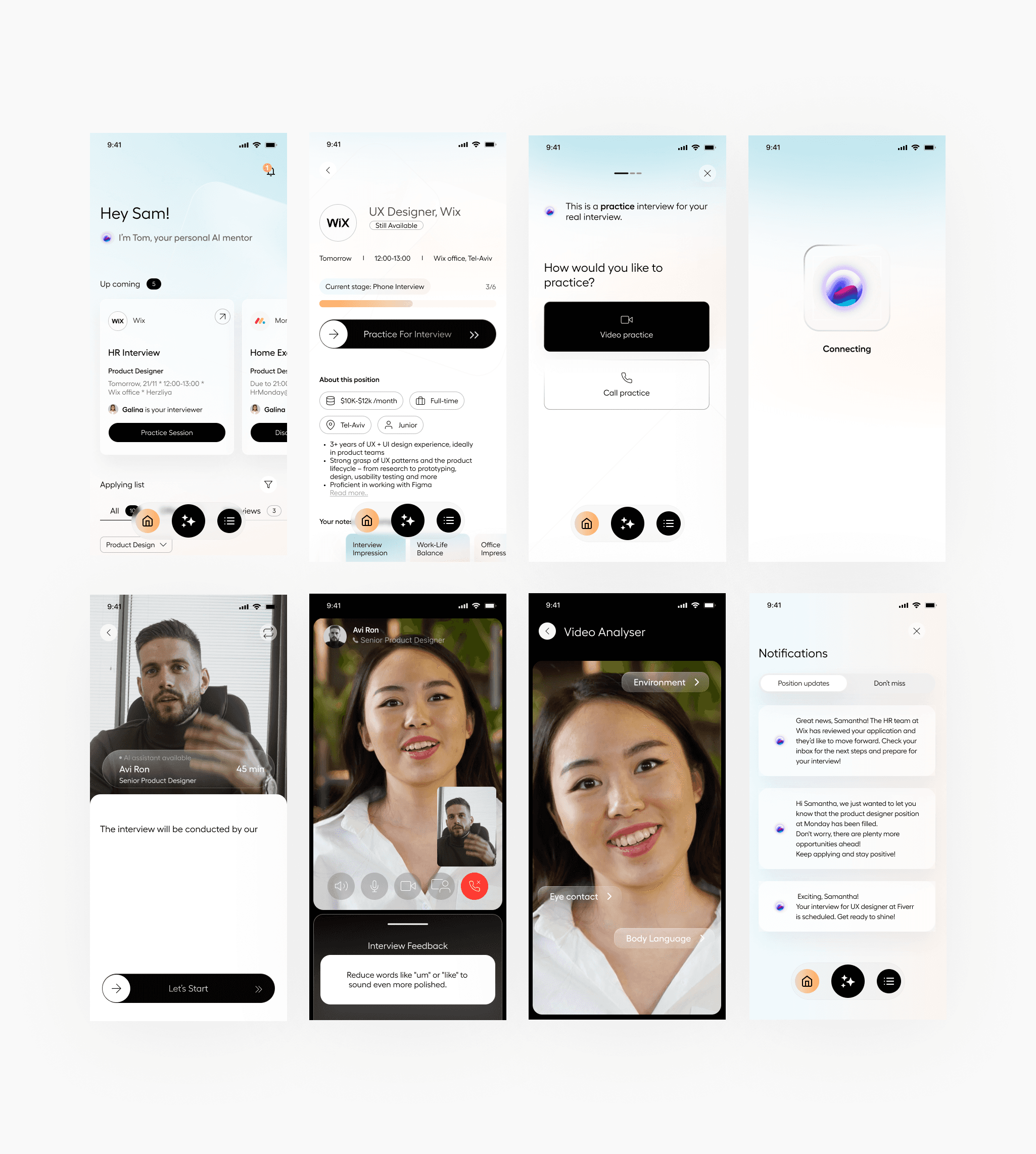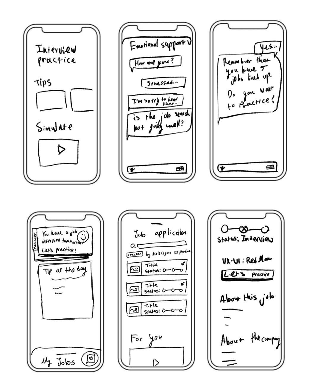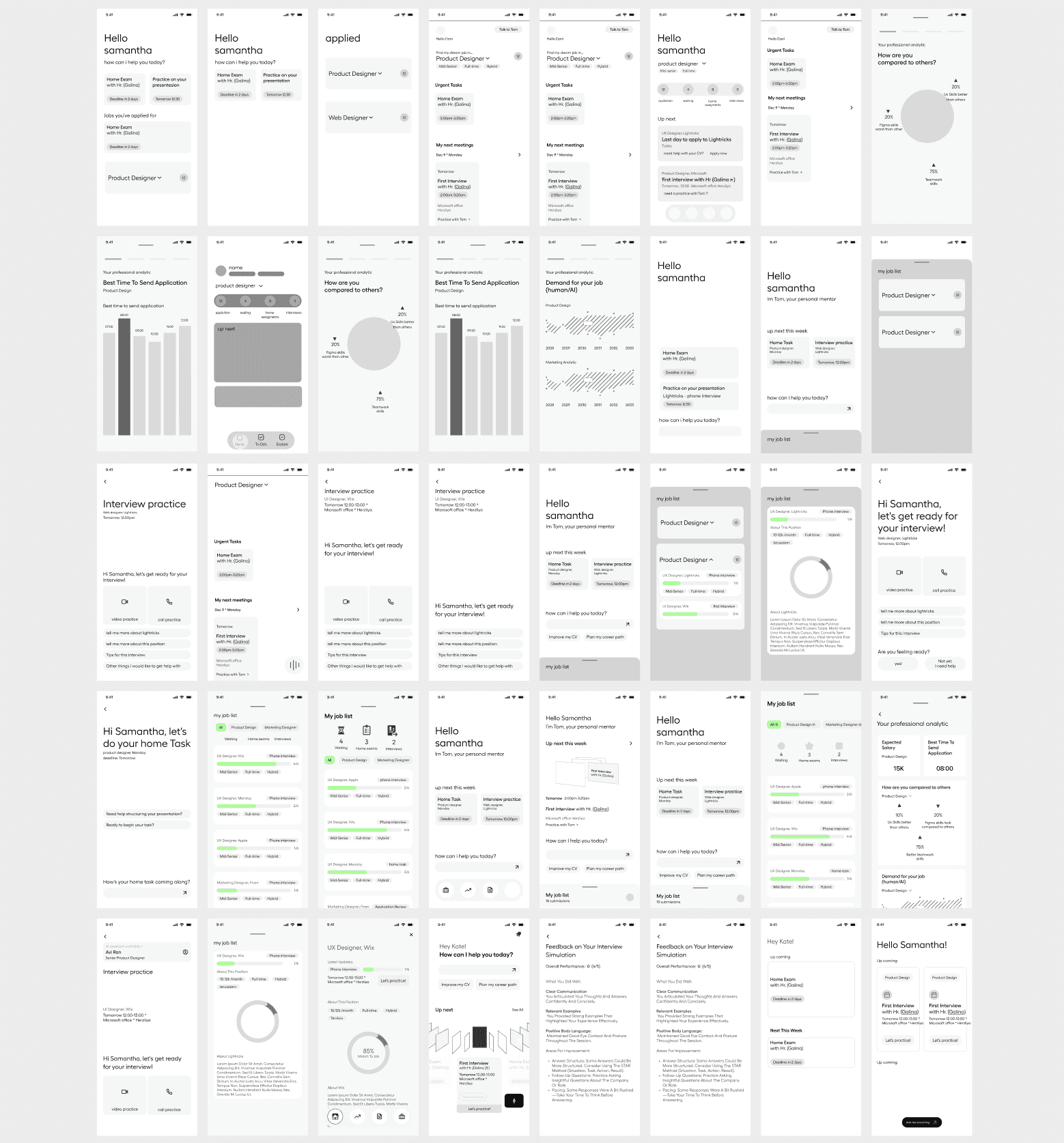 The app features a clean, modern interface designed to reduce overwhelm and support focus during the job search process. A minimal layout, soft color palette, and clear visual hierarchy create an experience that feels approachable, professional, and easy to navigate—empowering junior job seekers with clarity, confidence, and actionable guidance.
