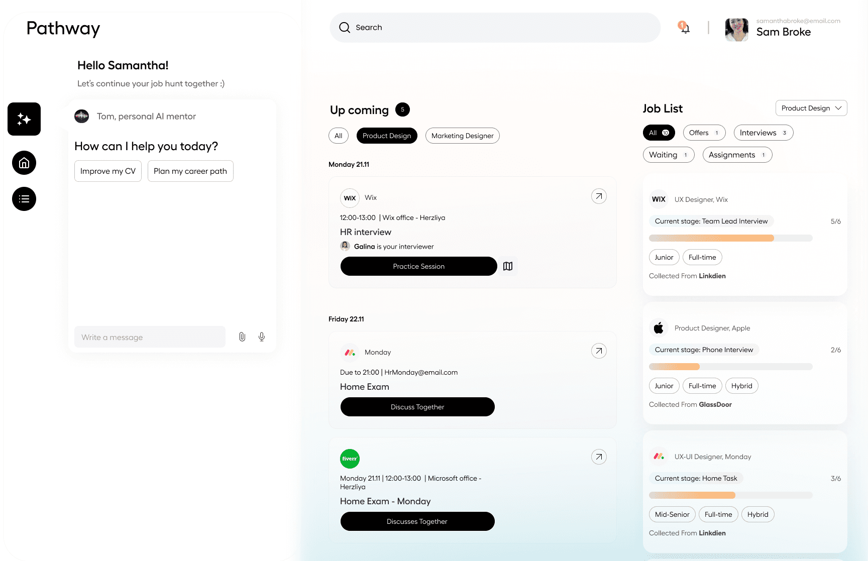 An AI-powered job mentor app designed to support junior job seekers with smart application tracking, personalized feedback, and strategic insights. Built in just three weeks, it streamlines the job search and empowers users with clarity, confidence, and growth.